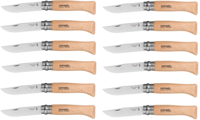 Boite de 12 Couteaux Opinel N°8 lame inox manche en hêtre