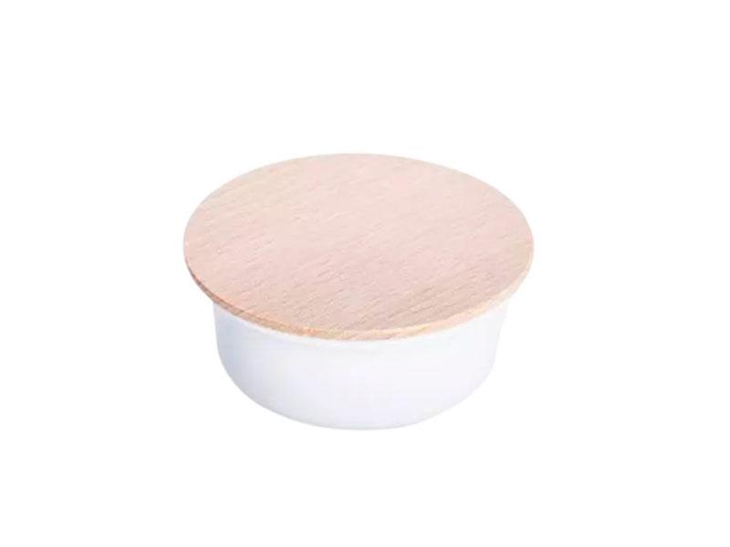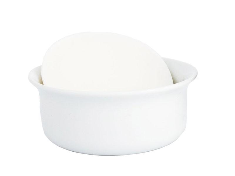 Bol à barbe Plisson en porcelaine, couvercle bois, avec savon à barbe