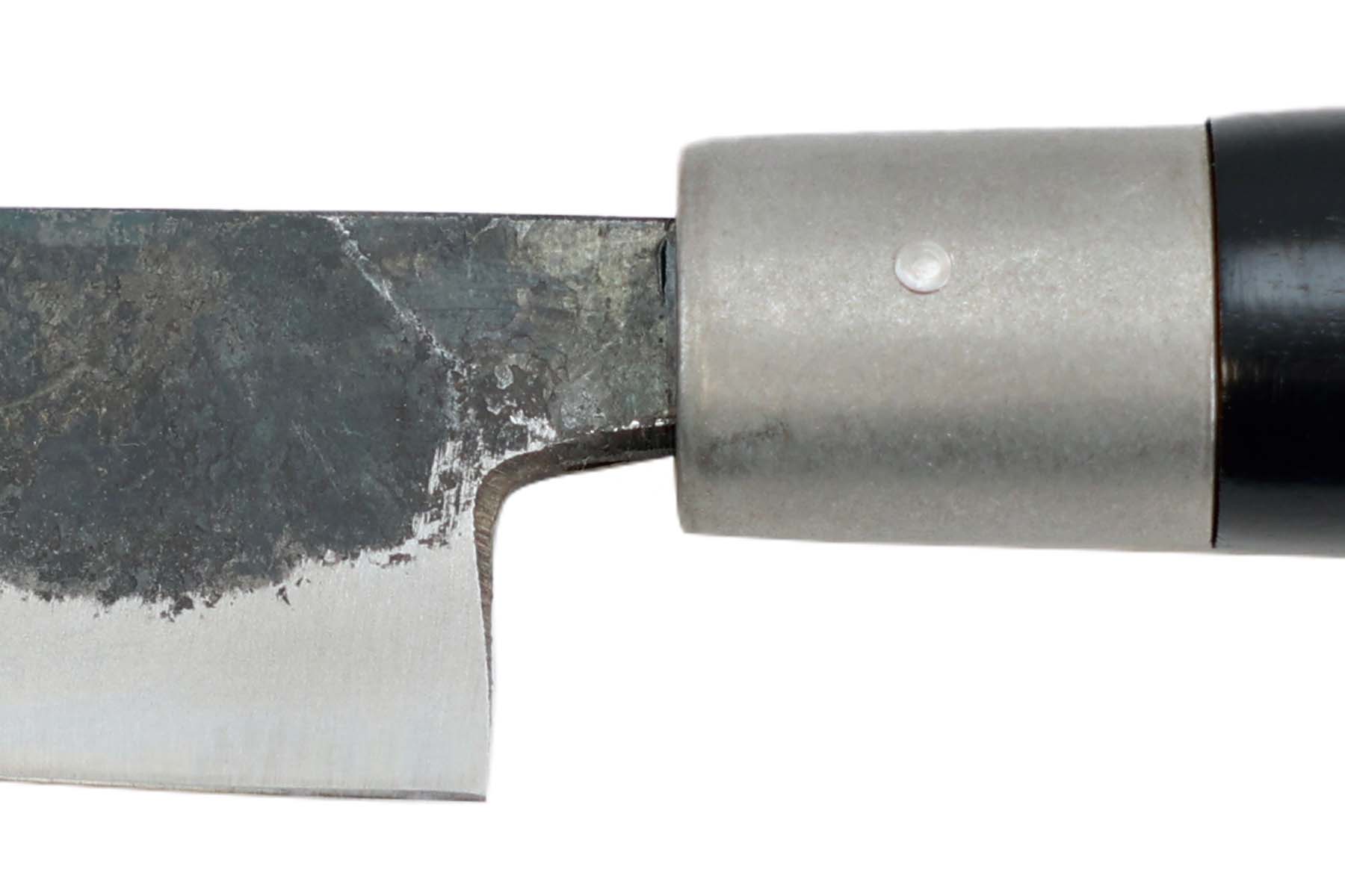 Lame forgée en acier carbone Aoko Blue Steel (62±1 HRC), finition brut de forge.