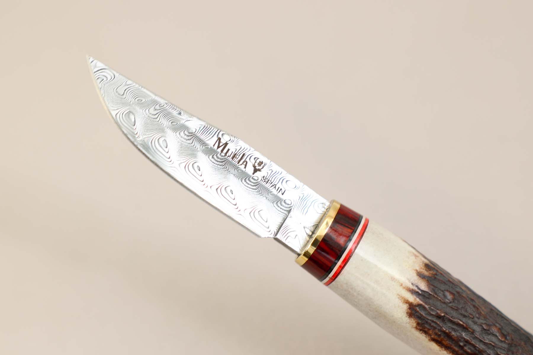 • Poignard de chasse Muela Bowie lame 7.5 cm damas - manche stamina/cerf