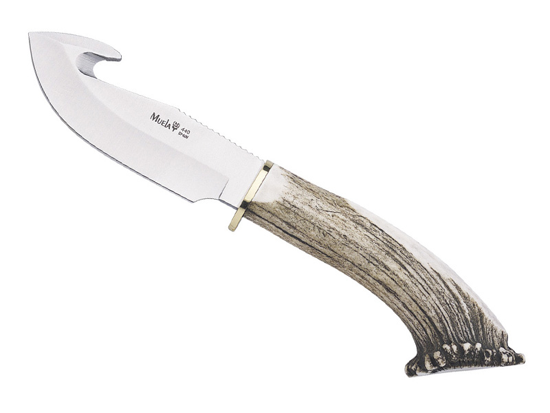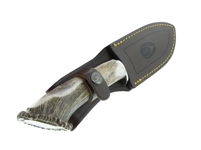 Poignard de chasse Viper de chez Muela avec une lame à dépouiller de 11 cm en acier inox X50CrMoV15, une garde en inox et un manche en cerf véritable
