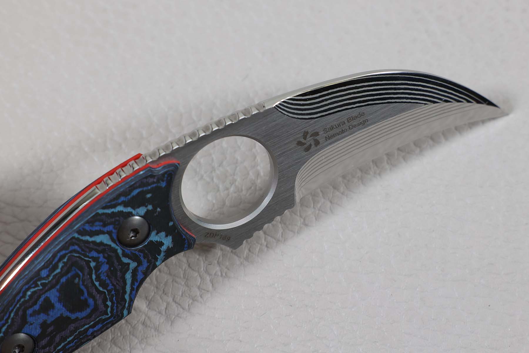 Il est muni d'une lame en ZDP-189 17 couches de très haute gamme.