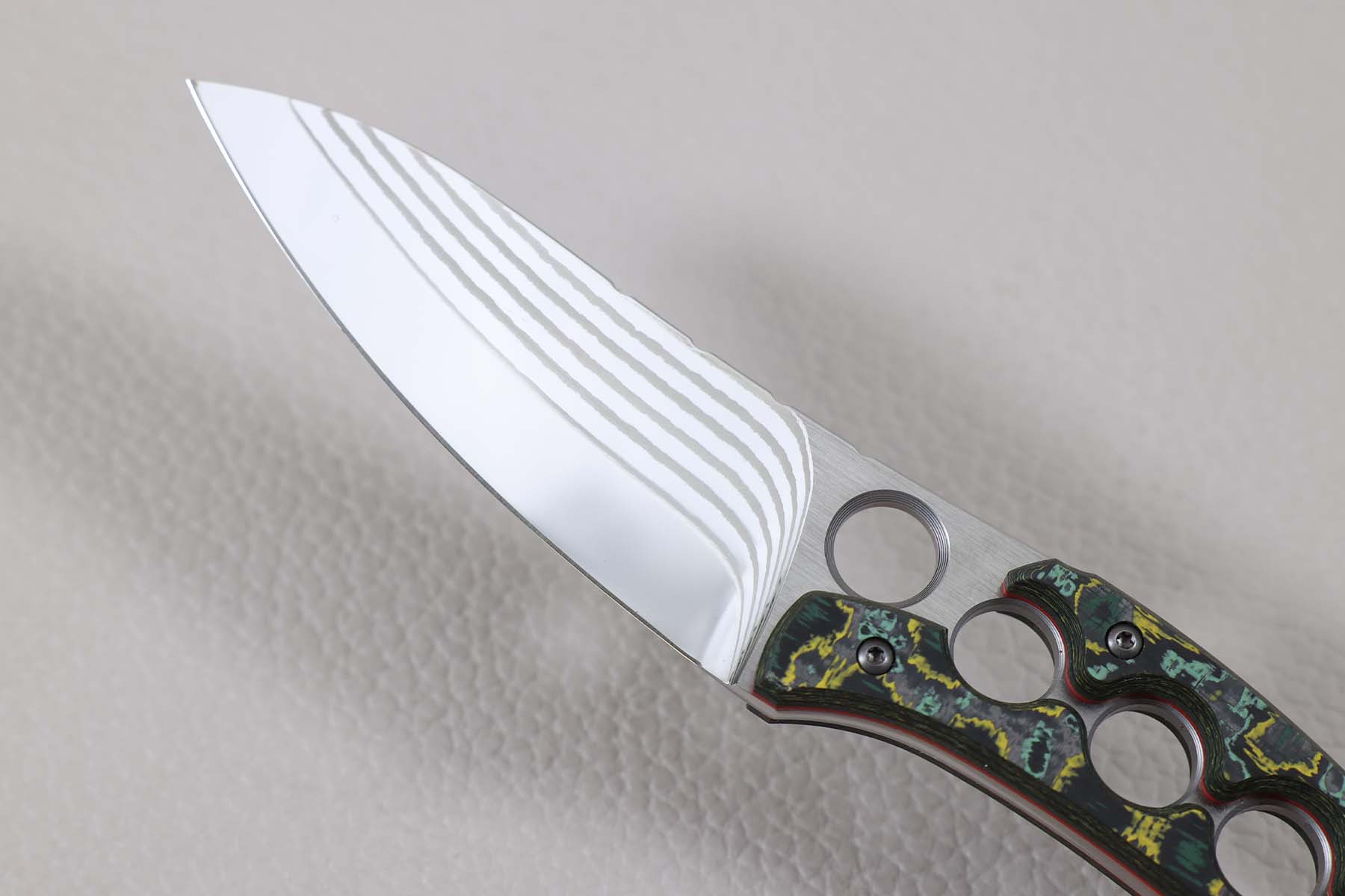 Il est muni d'une lame en ZDP-189 17 couches de très haute gamme.