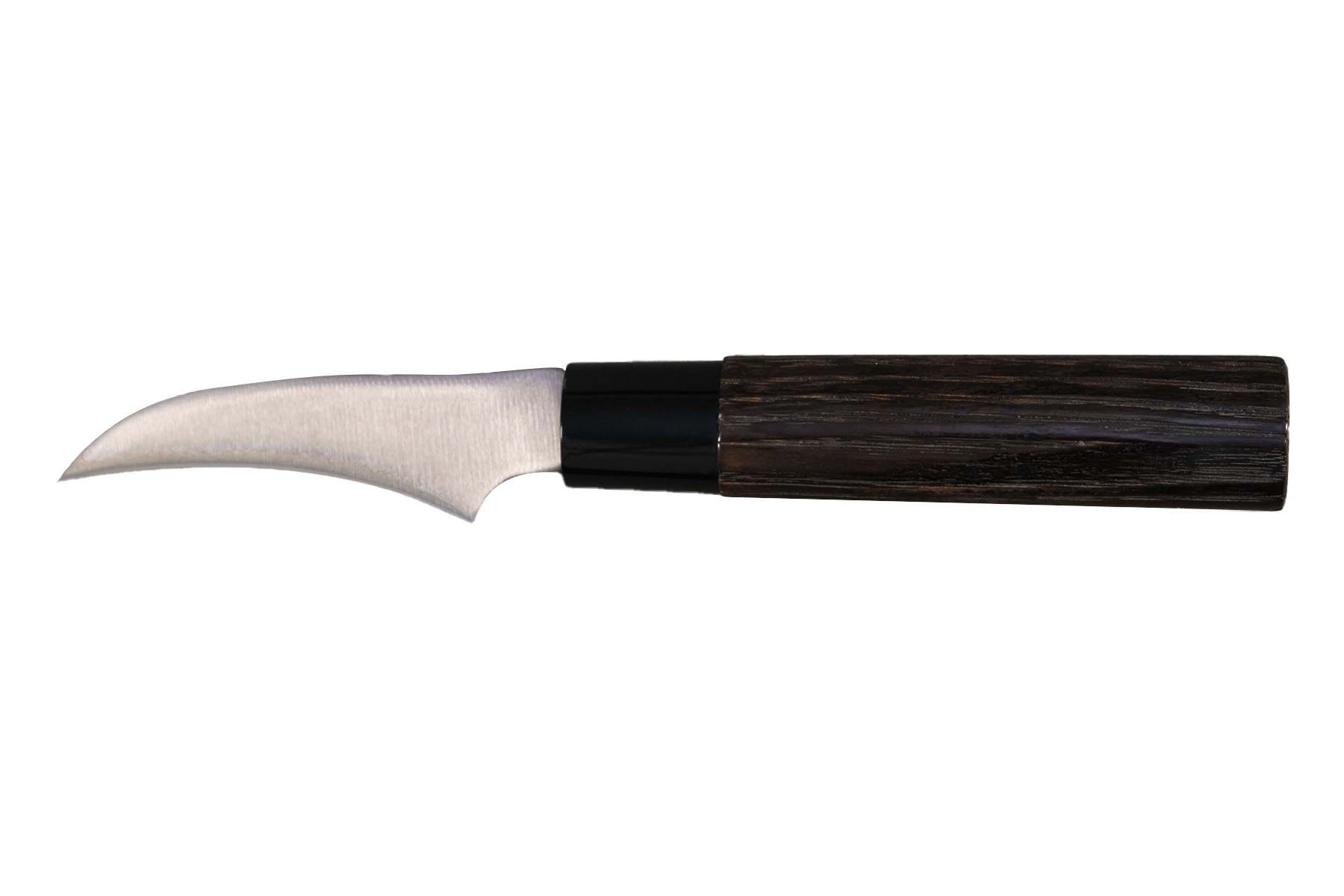 Couteau léger, maniable et très coupant. Sa lame courbée est appelée bec d'oiseau. Il permet par sa petite taille de travailler au plus près des aliments afin d'obtenir un résultat de professionnel. Sa lame courbée facilite l'épluchage, la préparation des légumes et des fruits ronds comme les pommes de terre, les poires, les pommes… Lame de 7 cm très tranchante.