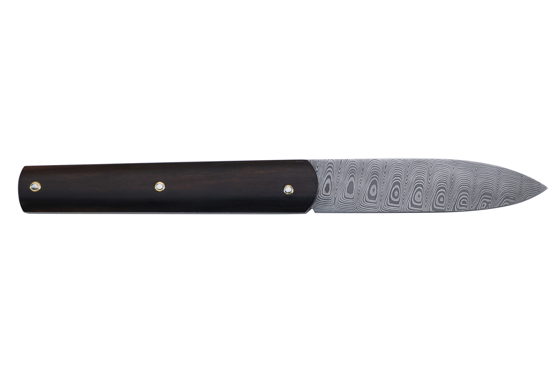 Couteau modèle le Parisii manche ébène de macassar, lame damas