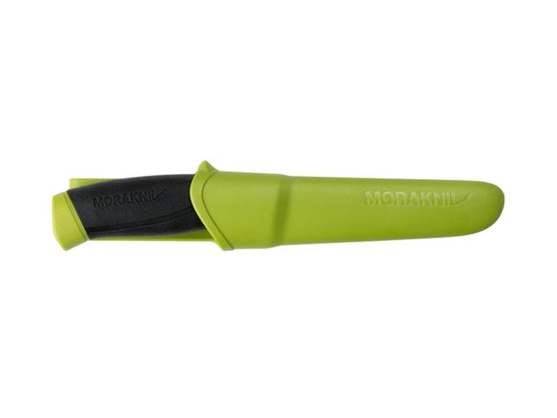Poignard Mora Compagnon MG de la marque suédoise Morakniv comprenant une lame de 10,5 cm en inox et un manche en gomme noir et vert pomme.