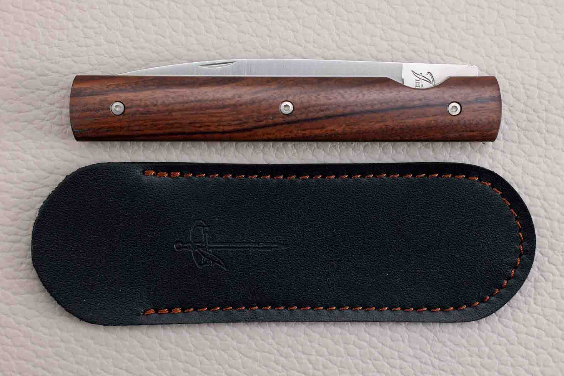 Chaque couteau Le Français est livré avec un étui cuir de vachette pleine fleur.