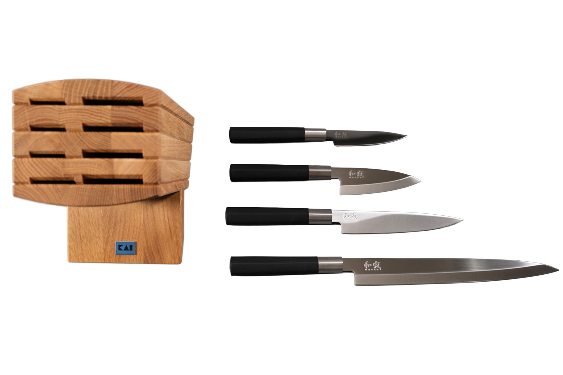 Bloc complet de 8 couteaux japonais Kai Wasabi Black