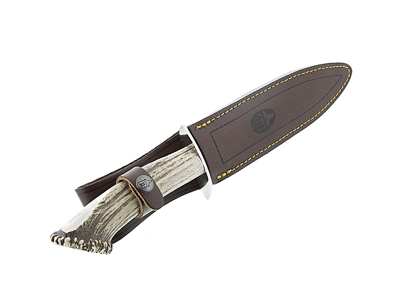 Poignard de chasse Alcaraz de chez Muela avec une lame de 19 cm en acier inox X50CrMoV15, un manche en cerf véritable et une garde en inox.