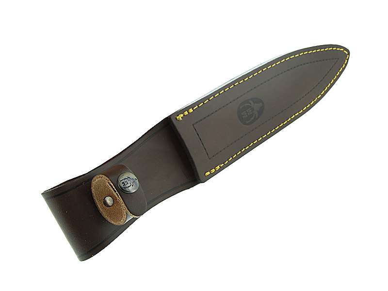 Dague de chasse Bowie de chez Muela avec une lame de 19 cm en acier inox X50CrMoV15, un manche en stamina et une monture en laiton.