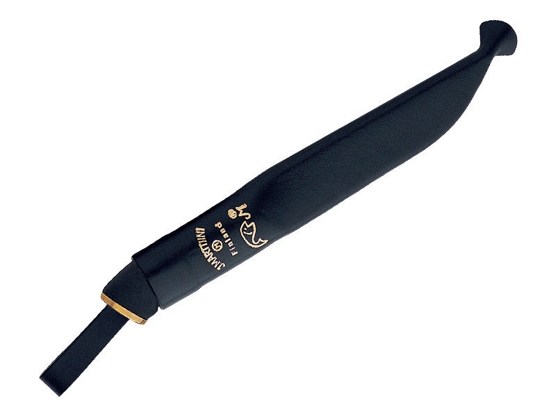 Poignard de la marque finlandaise Marttiini avec une lame flexible à filets de 15 cm en inox et un manche en caoutchouc.